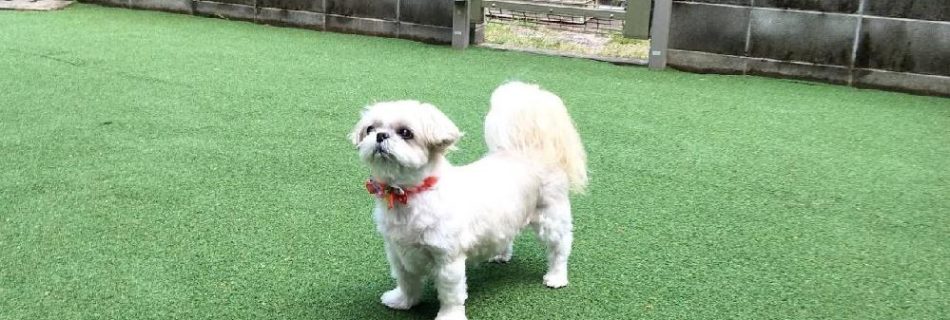 ドッグラン施工事例 いつもお散歩の途中に事務所に寄ってくださるワンちゃんのお家のお庭工事をさせていただきました。草が生えて草むしりが大変だった裏庭に人工芝を敷いて、ドッグランに大変身!!今回は人工芝【 メモリーターフ …